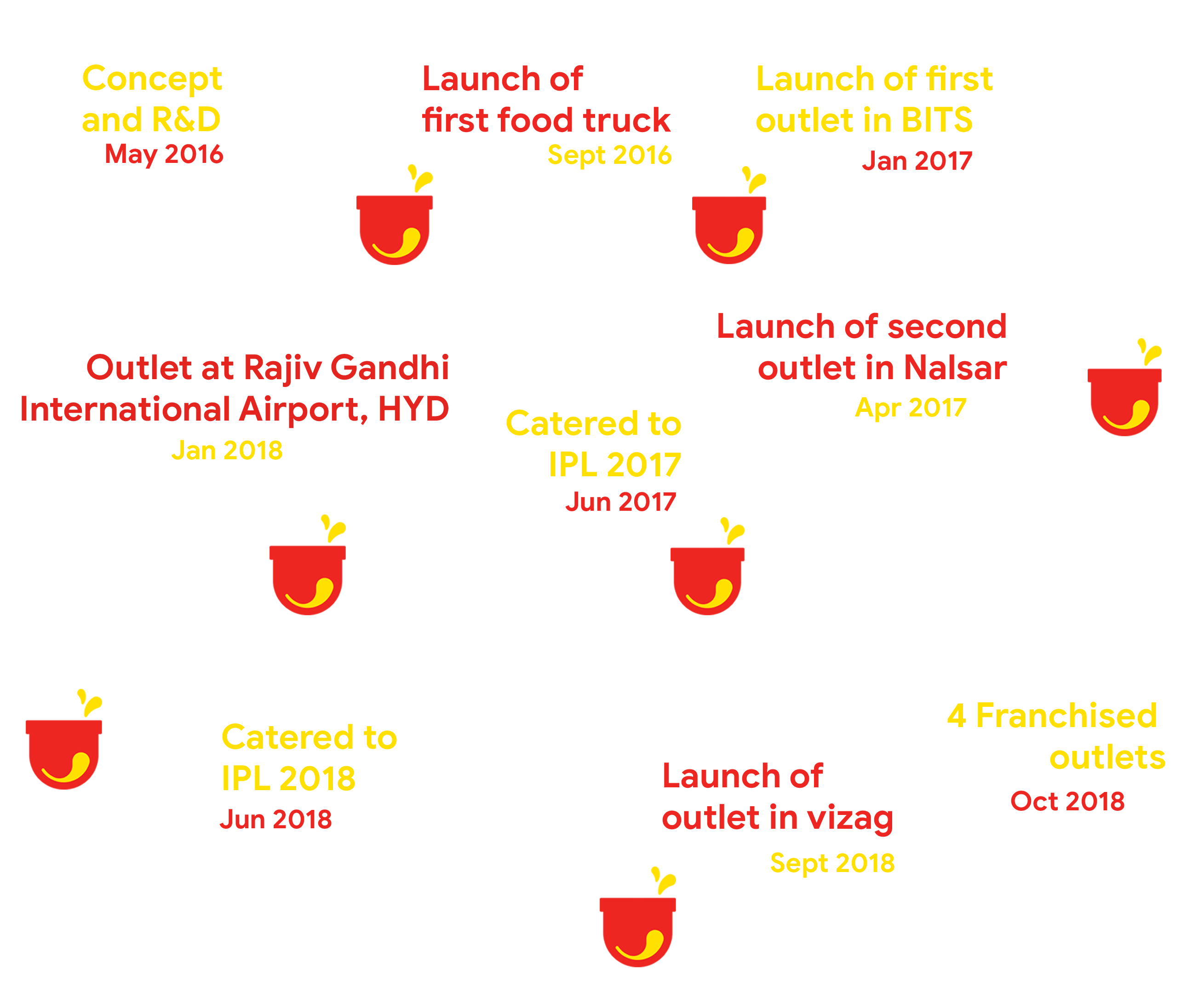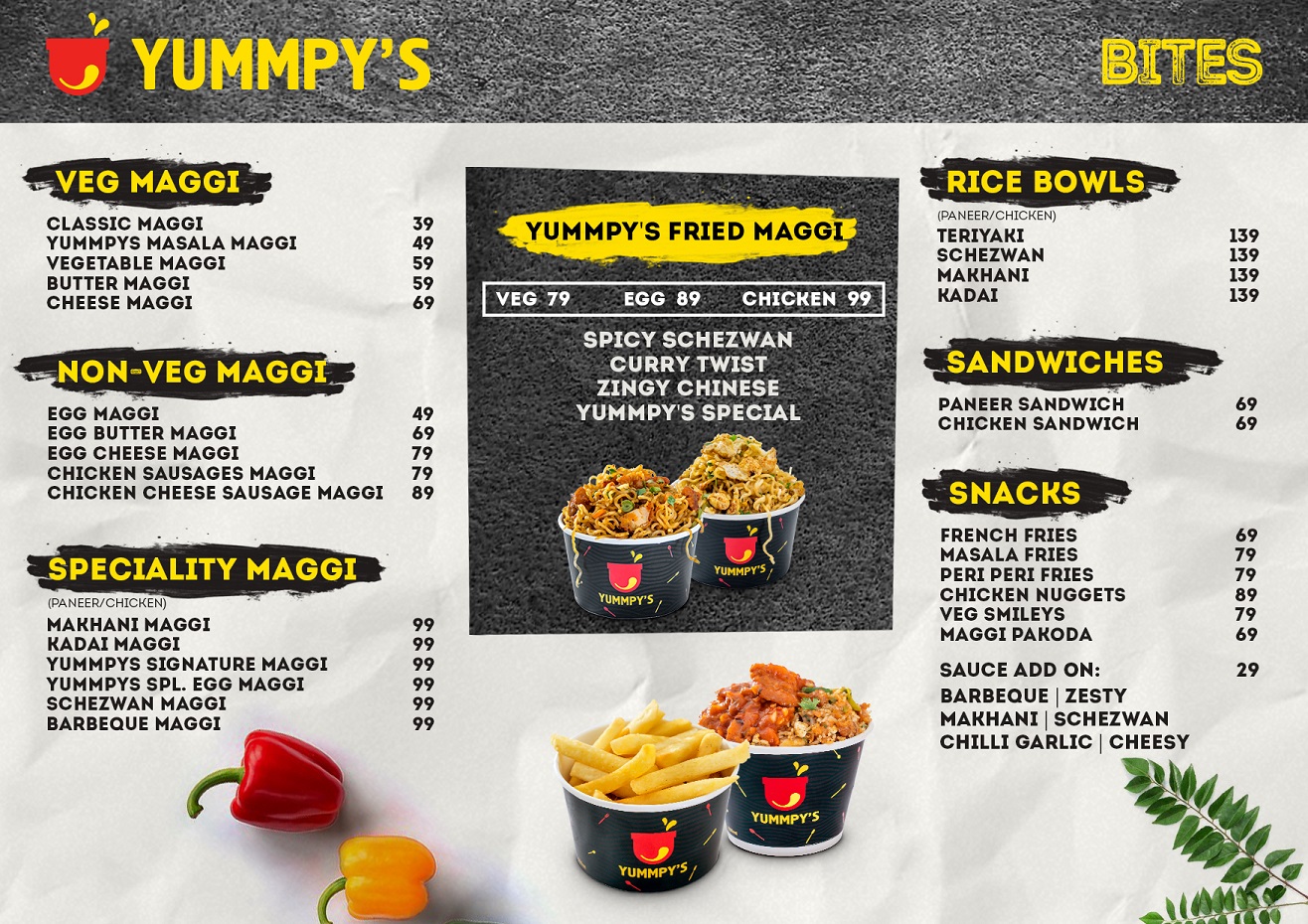 Yummpy's was born when a few passionate foodies decided to create novel, lip smacking dishes using Maggi. We added a twist of flavour and have created recipes that are honest and full of love. Ever since our launch in 2016 we have worked with experienced chefs to create new and fresh flavours. We strive to provide high quality hygeinic food that is quick to serve and easy on the pocket much to the delight of our customers.